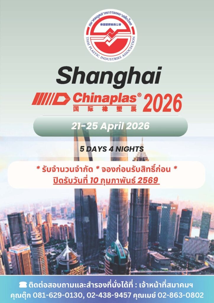 Association Activities & News Update ข่าวสารวงการพลาสติกข่าวสารในสมาคมขอเชิญร่วมเดินทางชมงาน CHINAPLAS 2026อ่านเพิ่มเติม ธันวาคม 12, 2025 / choosriข่าวสารวงการพลาสติกข่าวสารในสมาคมสมาคมอุตสาหกรรมพลาสติกไทยด่วน : ขอเชิญร่วมบริจาคเงินและสิ่งของช่วยผู้ประสบอุทกภัยภาคใต้อ่านเพิ่มเติม พฤศจิกายน 28, 2025 / choosriข่าวสารวงการพลาสติกข่าวสารในสมาคมประชาสัมพันธ์สิทธิพิเศษฟรี !! กรมธรรม์ประกันการส่งออก สำหรับสมาชิกสมาคมอุตสาหกรรมพลาสติกไทยอ่านเพิ่มเติม พฤศจิกายน 5, 2025 / choosri123…9› Exhibition Show ข่าวสารวงการพลาสติกสมาคมอุตสาหกรรมพลาสติกไทยลงทะเบียนล่วงหน้า – งานแสดงสินค้า A-PLAS 2024A-PLAS 2024 งานแสดงส ...อ่านเพิ่มเติม สิงหาคม 22, 2024 / สมาคมอุตสาหกรรมพลาสติกไทย Thai Plastic Industries Associateข่าวสารวงการพลาสติกสมาคมอุตสาหกรรมพลาสติกไทยรวมภาพการจัดกิจกรรม A-PLAS 2024 Road Showรวมภาพบรรยากาศการจัด ...อ่านเพิ่มเติม กรกฎาคม 12, 2024 / สมาคมอุตสาหกรรมพลาสติกไทย Thai Plastic Industries Associateสมาคมอุตสาหกรรมพลาสติกไทยพิเศษ !! กับผู้ประกอบการ SME ห้ามพลาดกับโครงการ BDS ที่จะสนับสนุนค่าใช้จ่ายในการออกบูธมากถึง 80%เชิญชวนผู้ประกอบการอ ...อ่านเพิ่มเติม มีนาคม 20, 2024 / สมาคมอุตสาหกรรมพลาสติกไทย Thai Plastic Industries Associate Plastic News Update ข่าวสารวงการพลาสติกข่าวสารในสมาคมขอเชิญร่วมเดินทางชมงาน CHINAPLAS 2026!! จองก่อนมีสิทธิ์ก่ ...อ่านเพิ่มเติม ธันวาคม 12, 2025 / choosriข่าวสารวงการพลาสติกข่าวสารในสมาคมสมาคมอุตสาหกรรมพลาสติกไทยด่วน : ขอเชิญร่วมบริจาคเงินและสิ่งของช่วยผู้ประสบอุทกภัยภาคใต้» สมาคมอุตสาหกรรมพลา ...อ่านเพิ่มเติม พฤศจิกายน 28, 2025 / choosriข่าวสารวงการพลาสติกข่าวสารในสมาคมประชาสัมพันธ์สิทธิพิเศษฟรี !! กรมธรรม์ประกันการส่งออก สำหรับสมาชิกสมาคมอุตสาหกรรมพลาสติกไทยตามที่ EXIM Bank ได้ ...อ่านเพิ่มเติม พฤศจิกายน 5, 2025 / choosriข่าวสารวงการพลาสติกข่าวสารในสมาคมเตรียมตัวให้พร้อม! เพื่อร่วมกิจกรรมกอล์ฟประจำปีสมาคมฯ 2568! เตรียมตัวให้พร้อม ...อ่านเพิ่มเติม ตุลาคม 17, 2025 / choosri123…7›เรื่องล่าสุด ขอเชิญร่วมเดินทางชมงาน CHINAPLAS 2026 ด่วน : ขอเชิญร่วมบริจาคเงินและสิ่งของช่วยผู้ประสบอุทกภัยภาคใต้ ประชาสัมพันธ์สิทธิพิเศษฟรี !! กรมธรรม์ประกันการส่งออก สำหรับสมาชิกสมาคมอุตสาหกรรมพลาสติกไทย ฉบับเดือน กันยายน – ตุลาคม 2568 เตรียมตัวให้พร้อม! เพื่อร่วมกิจกรรมกอล์ฟประจำปีสมาคมฯ 2568 วารสารทั้งหมด วารสาร (E-Journal) ปี 2568ฉบับเดือน กันยายน – ตุลาคม 2568วารสารสาระพลาสติกเพื ...อ่านเพิ่มเติม พฤศจิกายน 1, 2025 / thaitpiaวารสาร (E-Journal) ปี 2568ฉบับเดือน กรกฎาคม – สิงหาคม 2568วารสารสาระพลาสติกเพื ...อ่านเพิ่มเติม สิงหาคม 8, 2025 / สมาคมอุตสาหกรรมพลาสติกไทย Thai Plastic Industries Associateวารสาร (E-Journal) ปี 2568ฉบับเดือน พฤษภาค