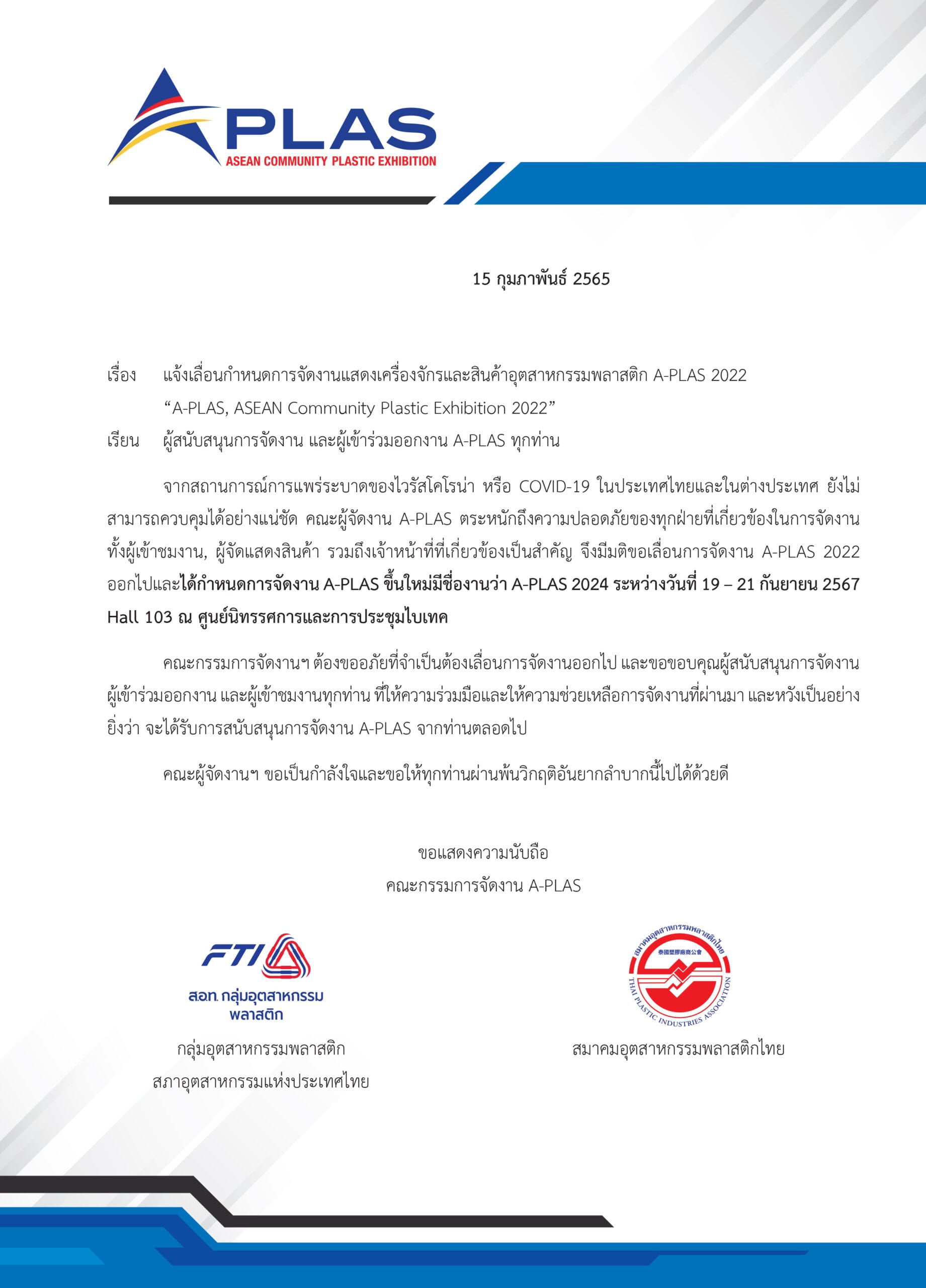 สมาคมอุตสาหกรรมพลาสติกไทย | THAI PLASTIC INDUSTRIES ASSOCIATE