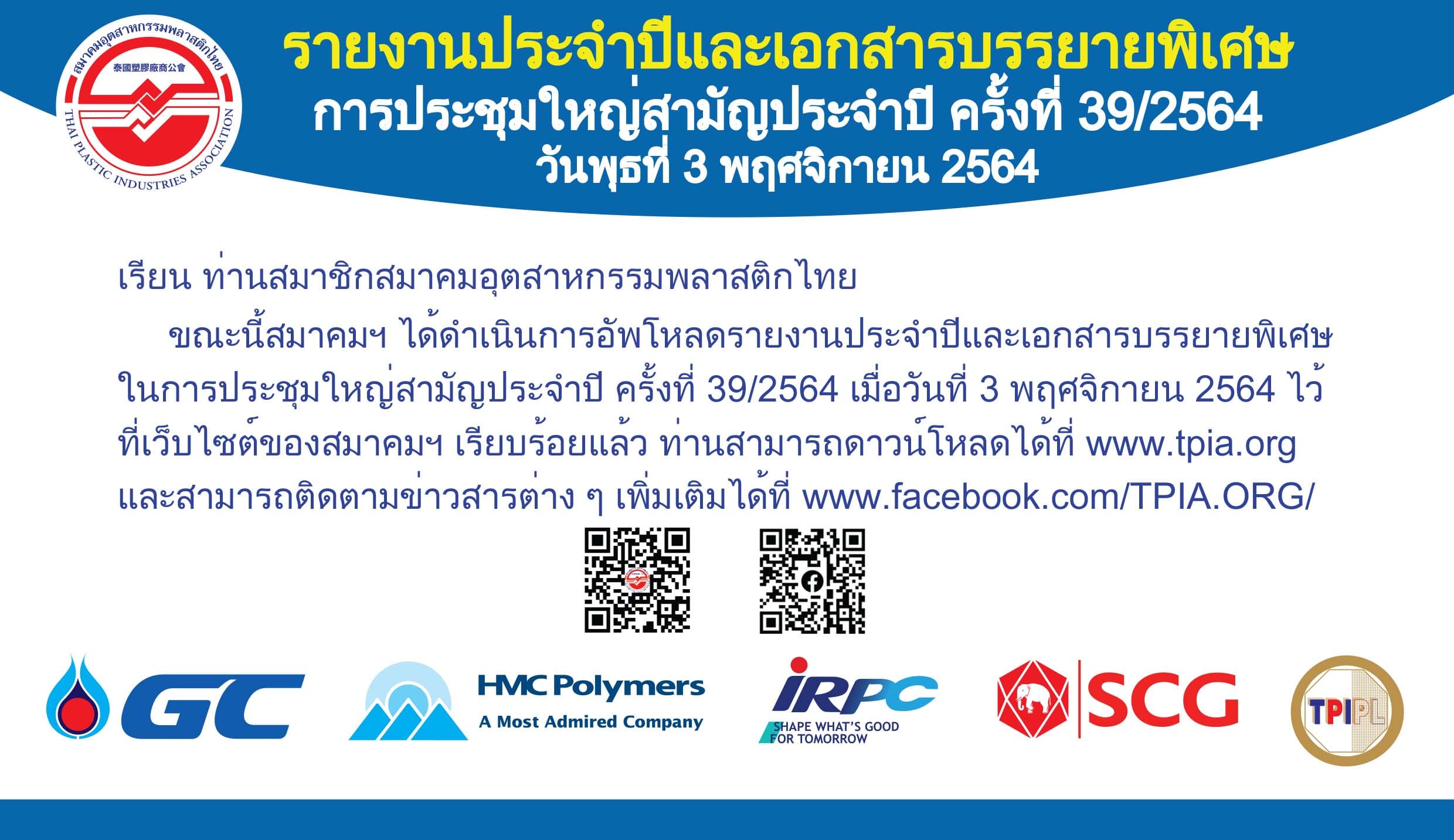สมาคมอุตสาหกรรมพลาสติกไทย | THAI PLASTIC INDUSTRIES ASSOCIATE